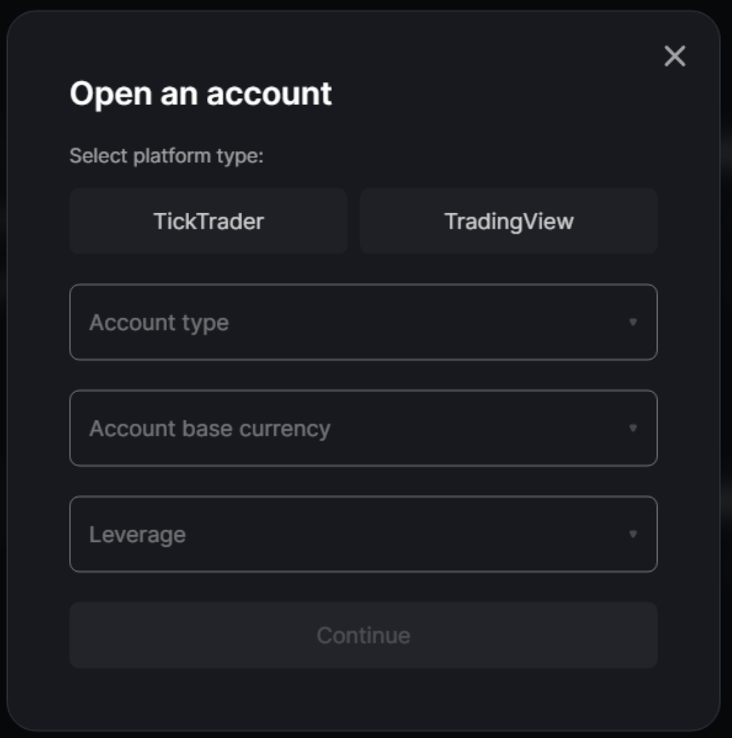 In the Add Account menu, under Trading Accounts, select the account type. Learn more about available account types in the TRADING > Trading Accounts section on the company's website.