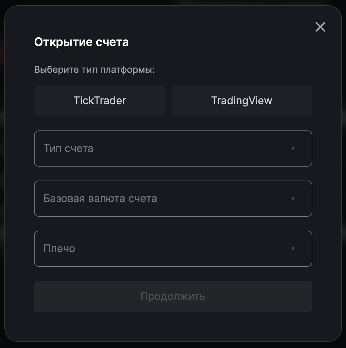 В меню Открыть счет выберите тип торгового счета в разделе Торговые счета. Подробную информацию о типах торговых счетов вы можете найти на официальном сайте FXOpen в разделе ТОРГОВЛЯ > Торговые счета.