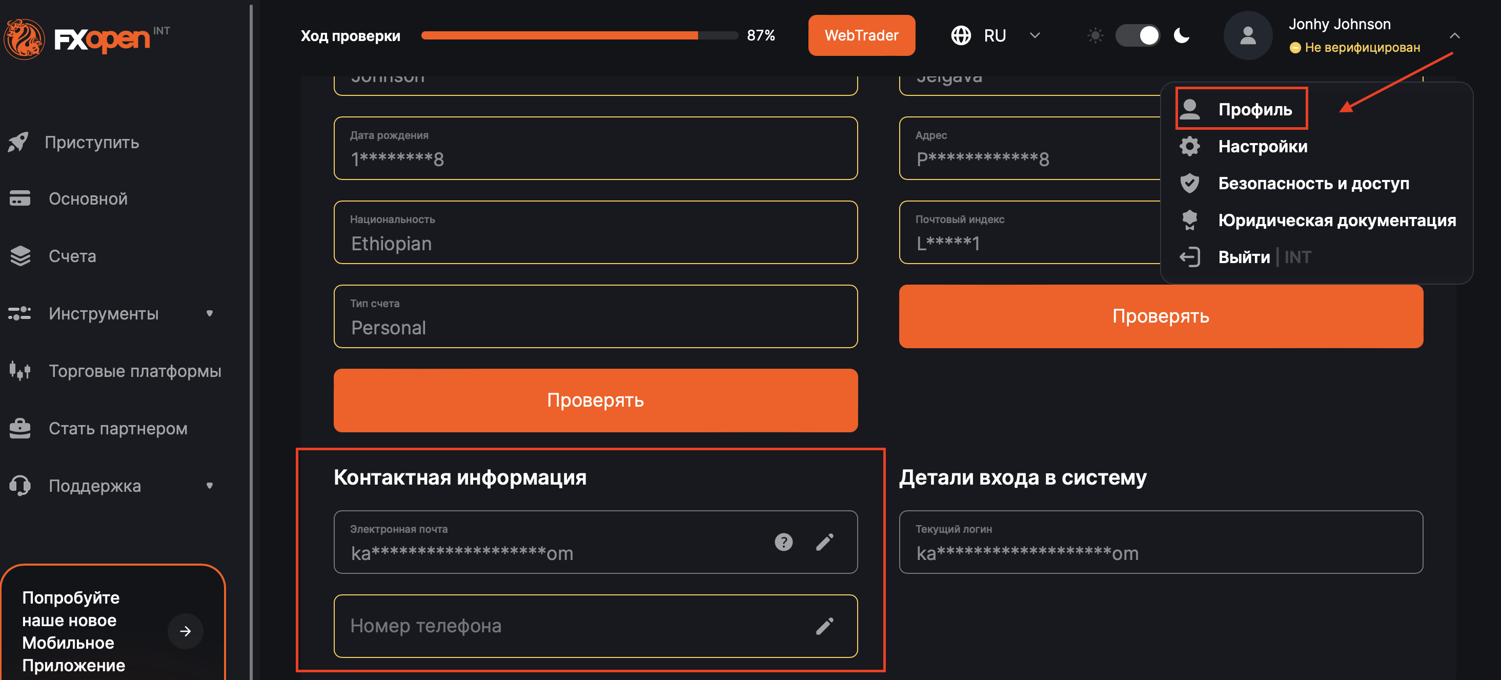 Для этого перейдите в раздел Профиль в верхнем меню. В нижней части страницы, в разделе Контактная информация, внесите необходимые изменения.